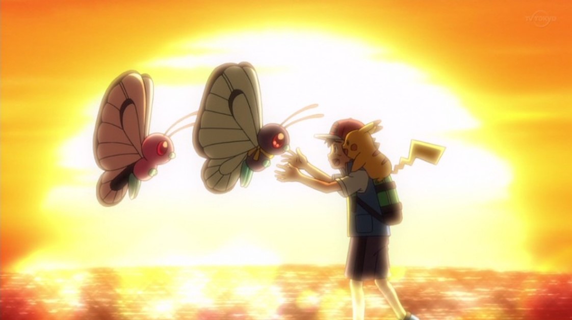 포켓몬스터 무인편 애니메이션에서 지우가 처음으로 잡은 포켓몬 버터플(당시 캐터피 부터 진화)이 짝(핑크 버터플)을 만나 떠나보내는 장면은 아직까지 내 기억 속에 남아있는데,
